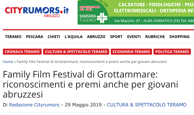 Home » Gianluca Testa premiato come MIGLIOR REGISTA al GROTTAMMARE FAMILY FILM & WEB SERIES FESTIVAL 2019 » city rumors ok 1